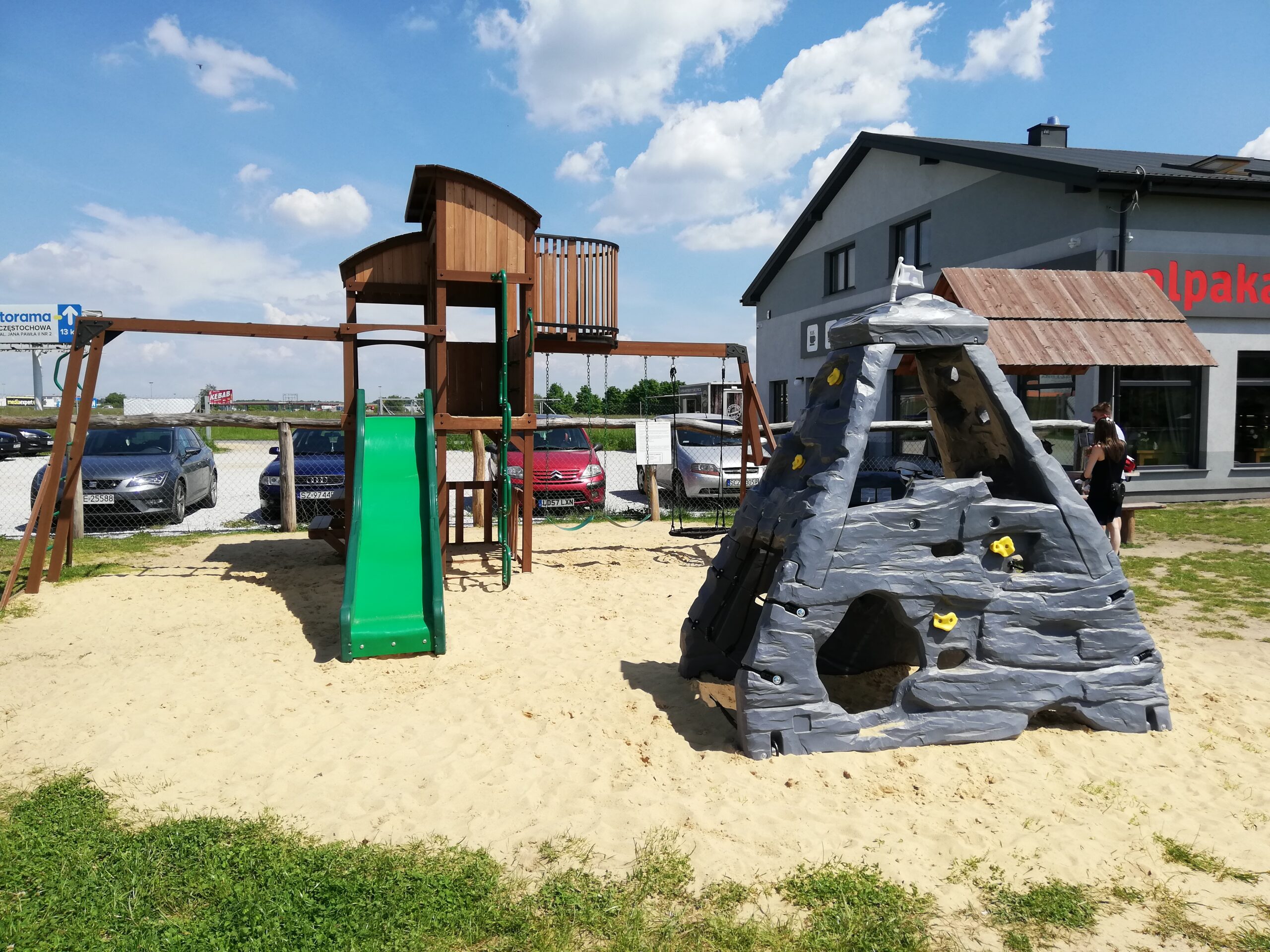 Odwiedziliśmy alpakarnię po raz kolejny. Nieco ponad rok po pierwszej wizycie. Przez ten czas trochę się pozmieniało. Właściciele zadbali o to, by dzieciaki poza zabawą z alpakami mogły skorzystać z typowo dziecięcych uciech. Dlatego powstał plac zabaw. Jest świetny, dziewczyny sprawdziły.