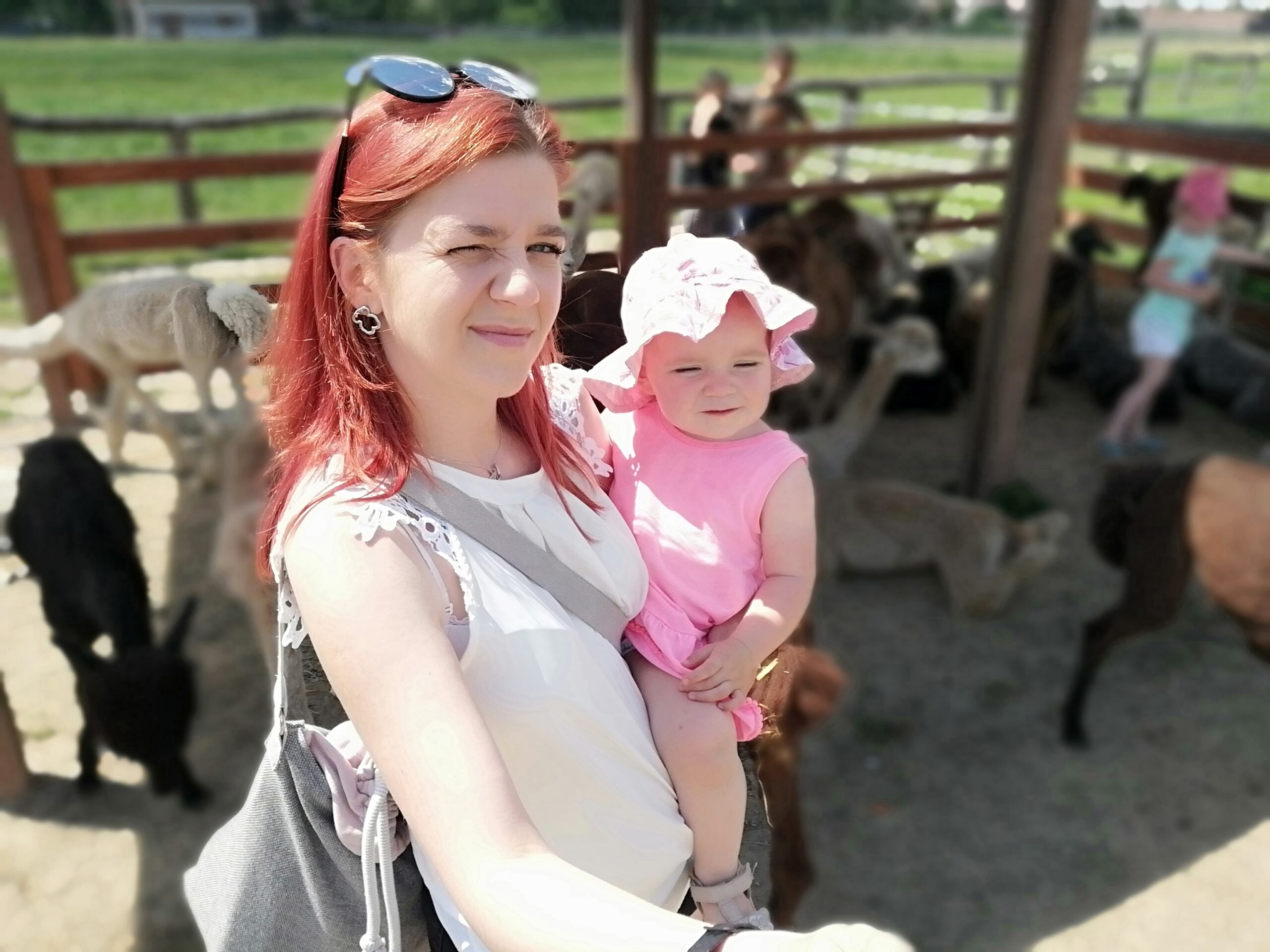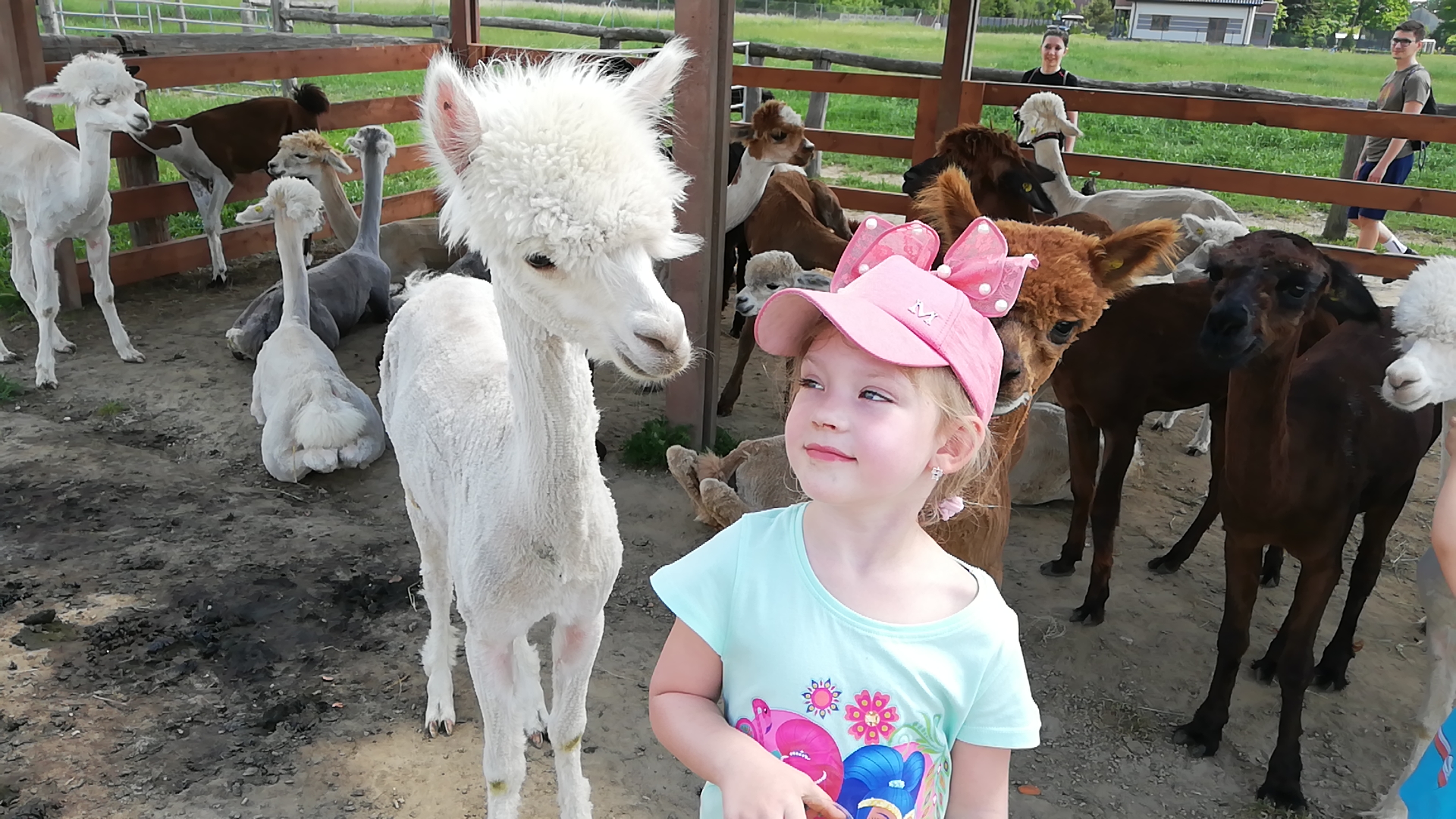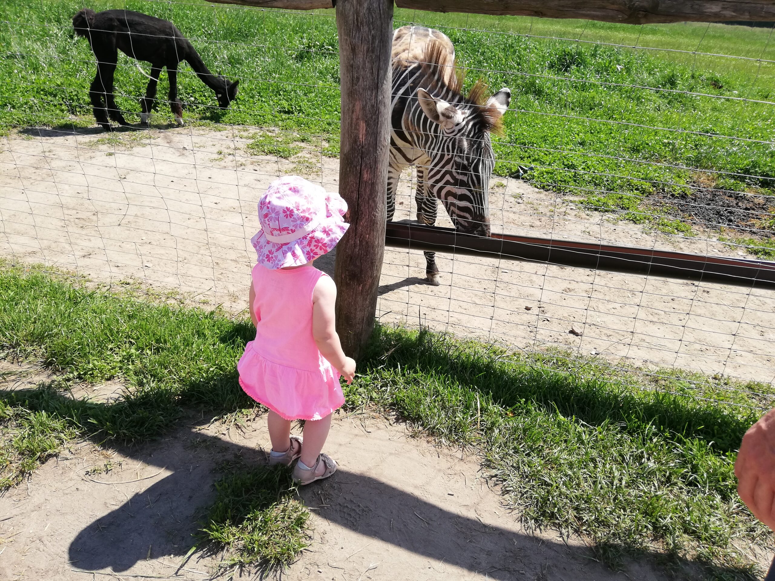 Grono zwierzaków się powiększyło. Mamy tu kozy afrykańskie, zebrę stepową, osła, ibisy, więcej kangurów. Tym razem przyjechaliśmy już po strzyżeniu alpak. Widać różnicę, widać ile mają na sobie wełny. Jedna z alpak jest totalnie przyjazna, przytuliła się do Rozalki. To było urocze, jednak musiałam wytłumaczyć córce, że nie możemy zabrać alpaki do domu.