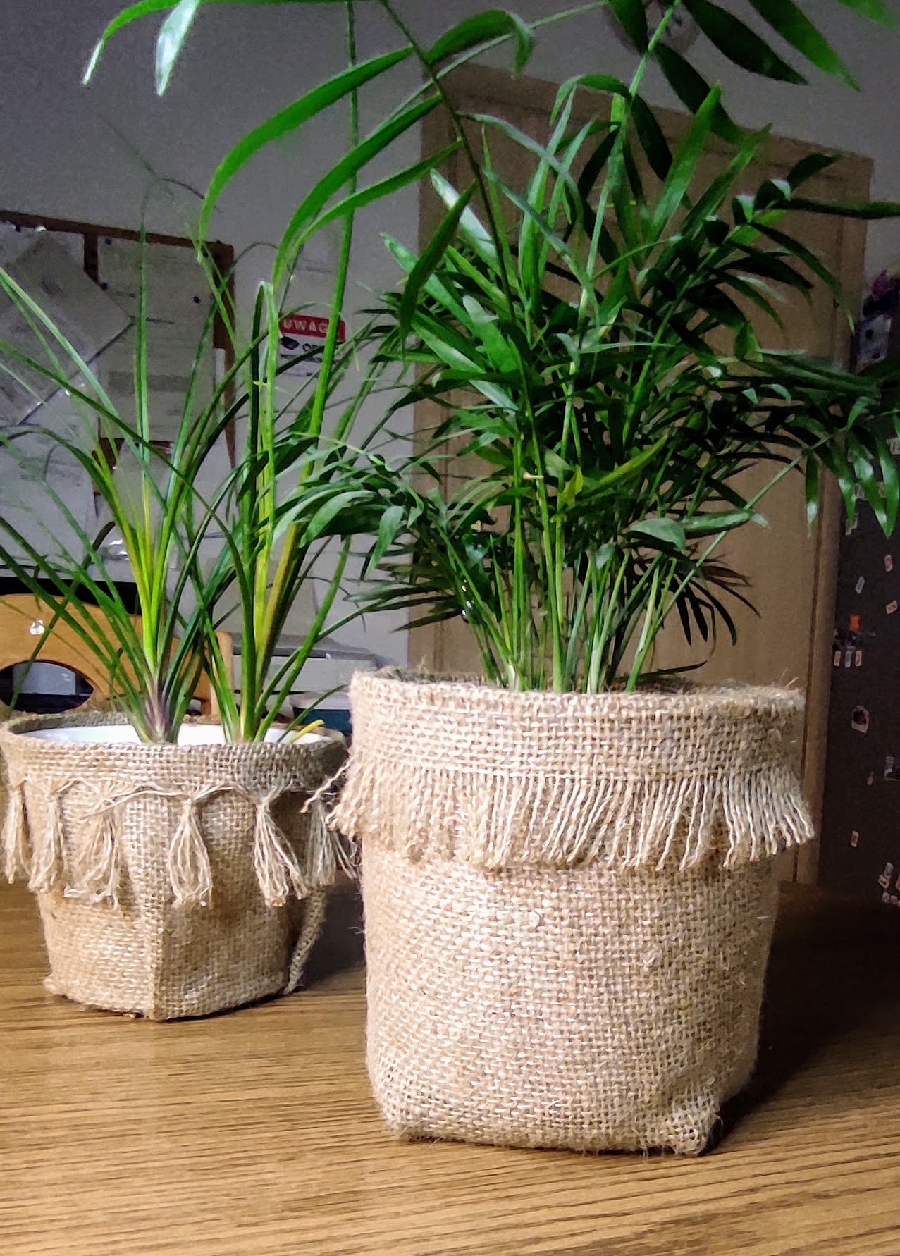 Wykonanie takiej doniczki zajęło mi około 30 minut. Jestem przekonana, że tobie pójdzie równie szybko. Tworząc z juty można się świetnie bawić. Moje osłonki wykonane są ze starych doniczek, ale można także zrobić miękką osłonkę, w stylu małego worka. Wystarczy użyć doniczki jako formy. Jednak w takim wypadku trzeba pamiętać, aby wewnątrz umieścić folię. Robi się to, aby nasza osłonka była szczelna i w razie przelania kwiatka nie zamokła. W procesie tworzenia osłonki podoba mi się to, że w każdej chwili możemy wpaść na kolejny pomysł. Możemy odmienić wszystkie doniczki jakie mamy w domu bardzo niskim kosztem. Mój jutowy worek kosztował 15 zł i miał pojemność chyba 60 litrów. Zrobiłam dwie osłonki, a starczy go na kolejne cztery, albo i sześć. To zależy, jakiej wielkości osłonki chcemy zrobić.